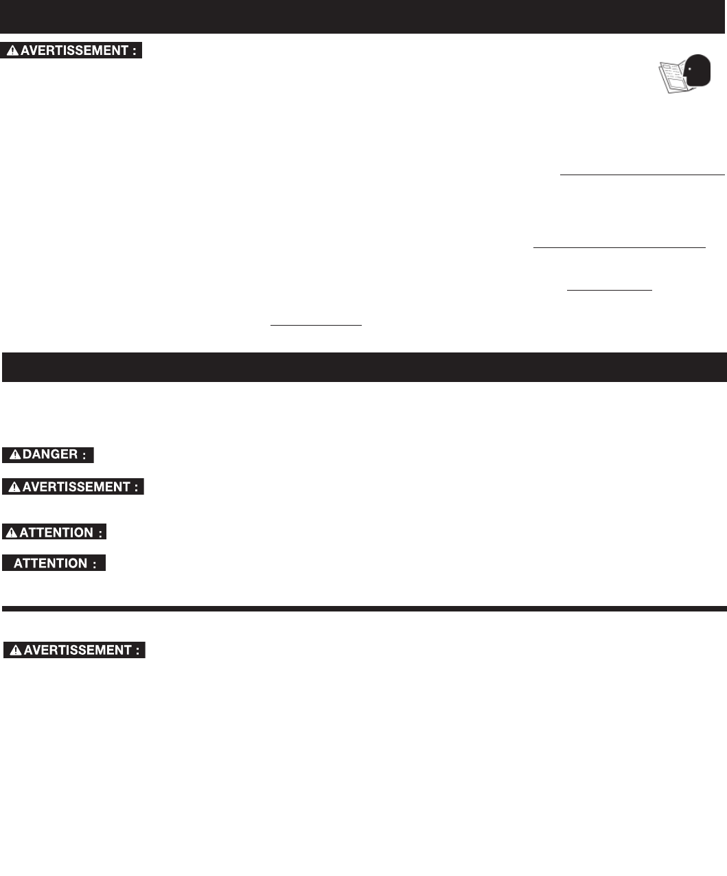 Lire et comprendre toutes instructions d'avertissements et opération avant
