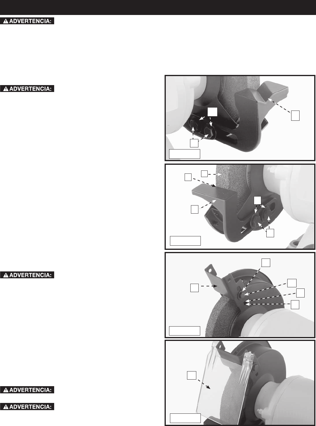 1/8 de pulgada o menos entre la rueda rectificadora (G) y
